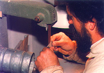 A Ser Jacopo Factory Tour Giancarlo works with a stem on a sanding belt. Photo ref: FT1004 Previous Photo Next Photo Return to: Ser Jacopo Pipes Factory Tour Marble Arch Home