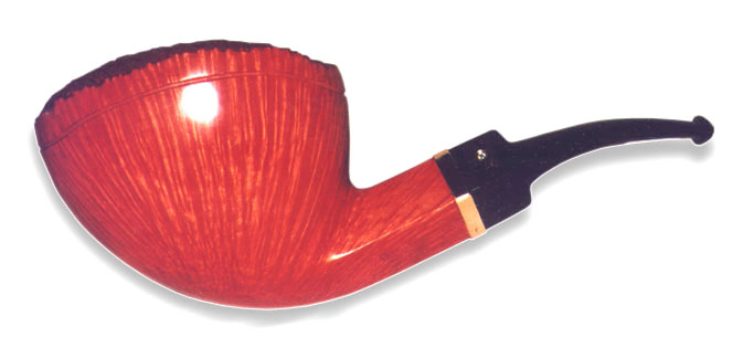 This is one of the most spectacular pipes we've ever seen. That is actually an understatement! To begin with it is immense. A quadruple (4X) Maxima - a designation that is virtually unknown - with massive quantities of straight grain encircling the bowl. As stunning as the straight grain is - the natural plateaux on top is perhaps even more so! Densely packed "eyes " at the top of the bowl are matched by exquisite and tightly packed birds-eye at the bottom of the bowl. The pipe is tastefully appointed with an 18k gold band, and the trademark genuine diamond set in an 18k gold setting mounted in the stem. We are trying to determine whether this is the most expensive pipe ever sold. Should you have information regarding a spectacular and expensive pipe, please contact us (try the HumanClick button below), so we can factor your information into the determination. reveal the price and full story regarding this magnificent Ser Jacopo. remove the question mark at the top of this page. This magnificent Ser Jacopo sold for $9,950.00. Keep in mind, this isn't a case of putting an extremely high price on the pipe and calling it the most expensive, because this pipe is sold! in August of 2000. He wasn't the first retailer to see it, but was the first to act. He told us he contacted one his customer and did his best to describe this spectacular briar. During the conversation the customer asked whether the pipe had 360° grain which it certainly does. Another retailer, who had seen this magnificent pipe commented, "That this pipe had 400° of straight grain!" Photo ref: TPBBA |