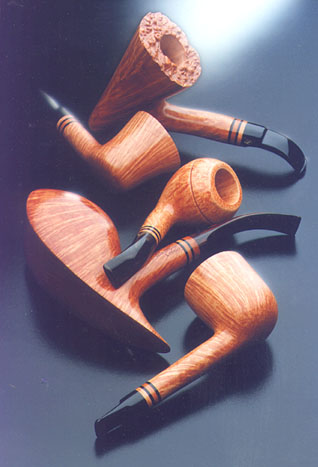 An assortment of freeform Viprati pipes. These with ornamental silver work.