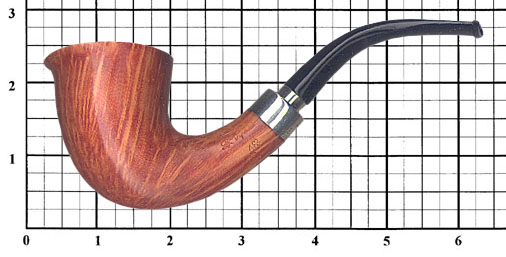 A lovely bent Dubiln with a bit of a "wind lip" at the front of the bowl. The pipe also has a sterling silver army mount, with a silver collar on the stem as well.